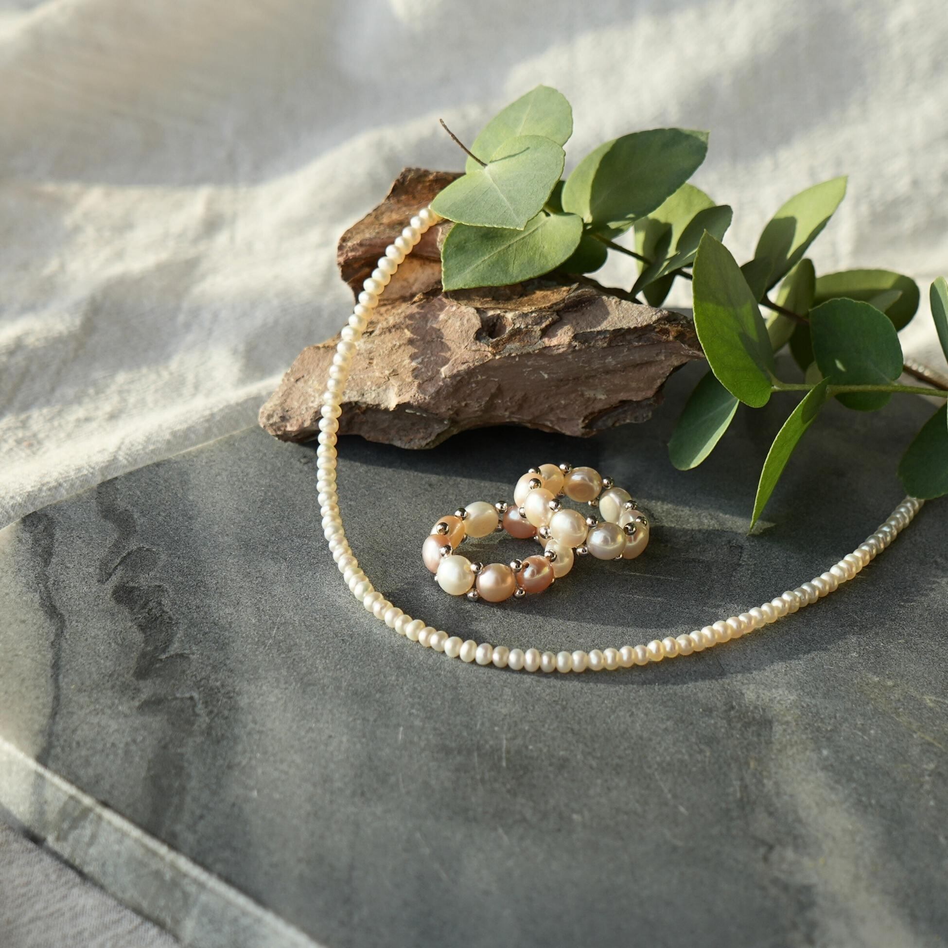 ※淡水パールは自然素材ですので、実際にお届けする商品と写真では色合い、形が若干異なる場合があります。ラ・シレーナは、1つ1つの淡水パールが、最も美しく輝ける向きや位置を考えて、ジュエリーを制作しています。