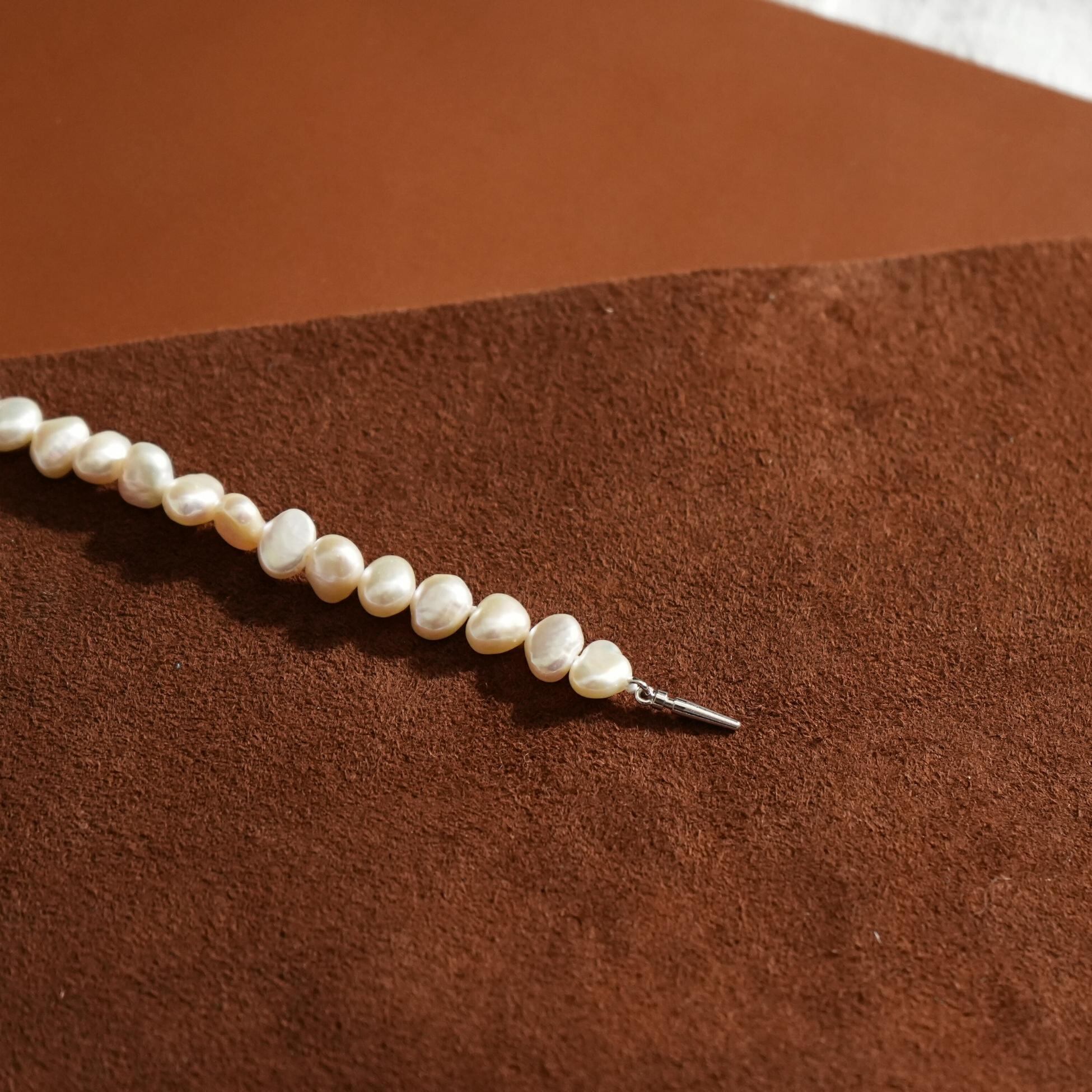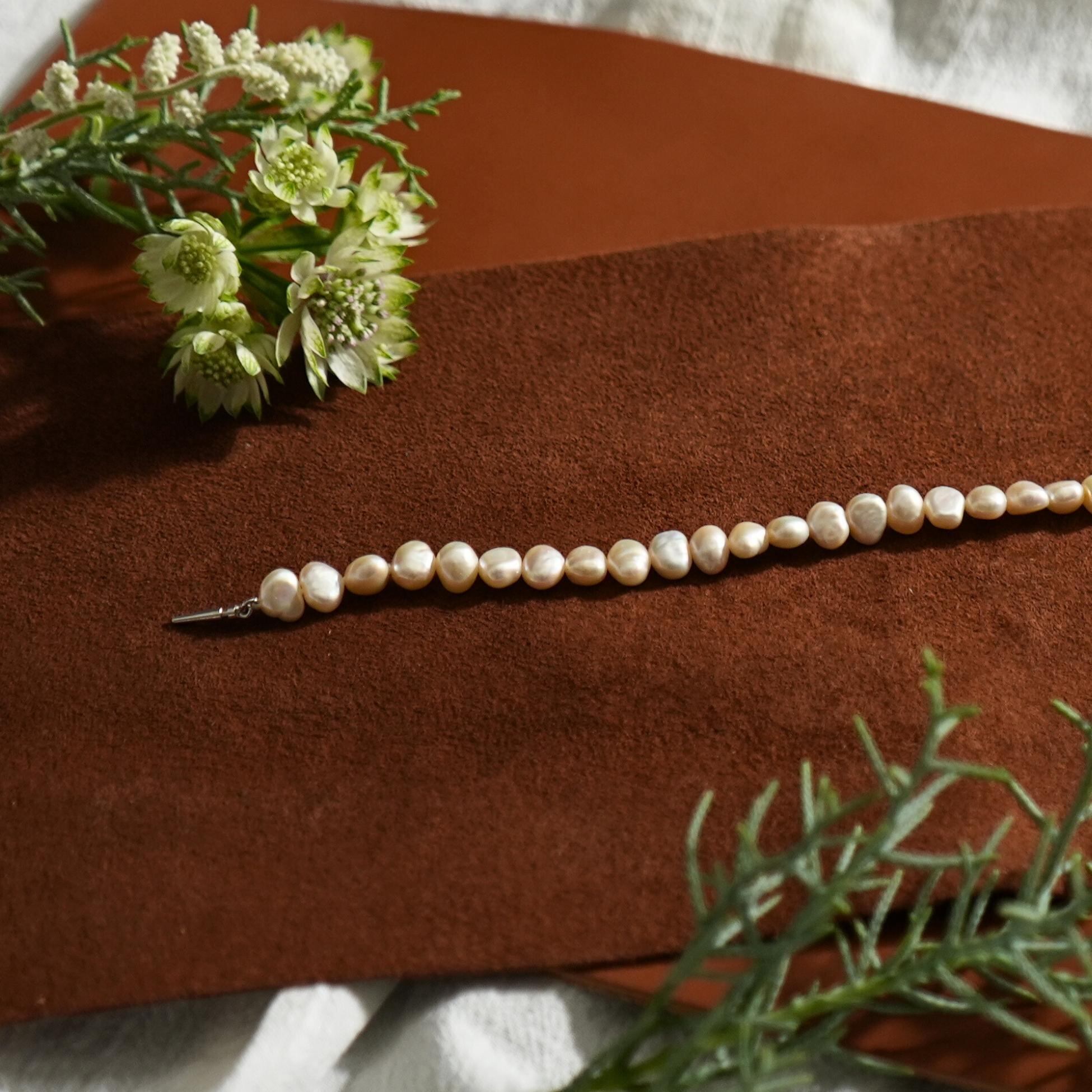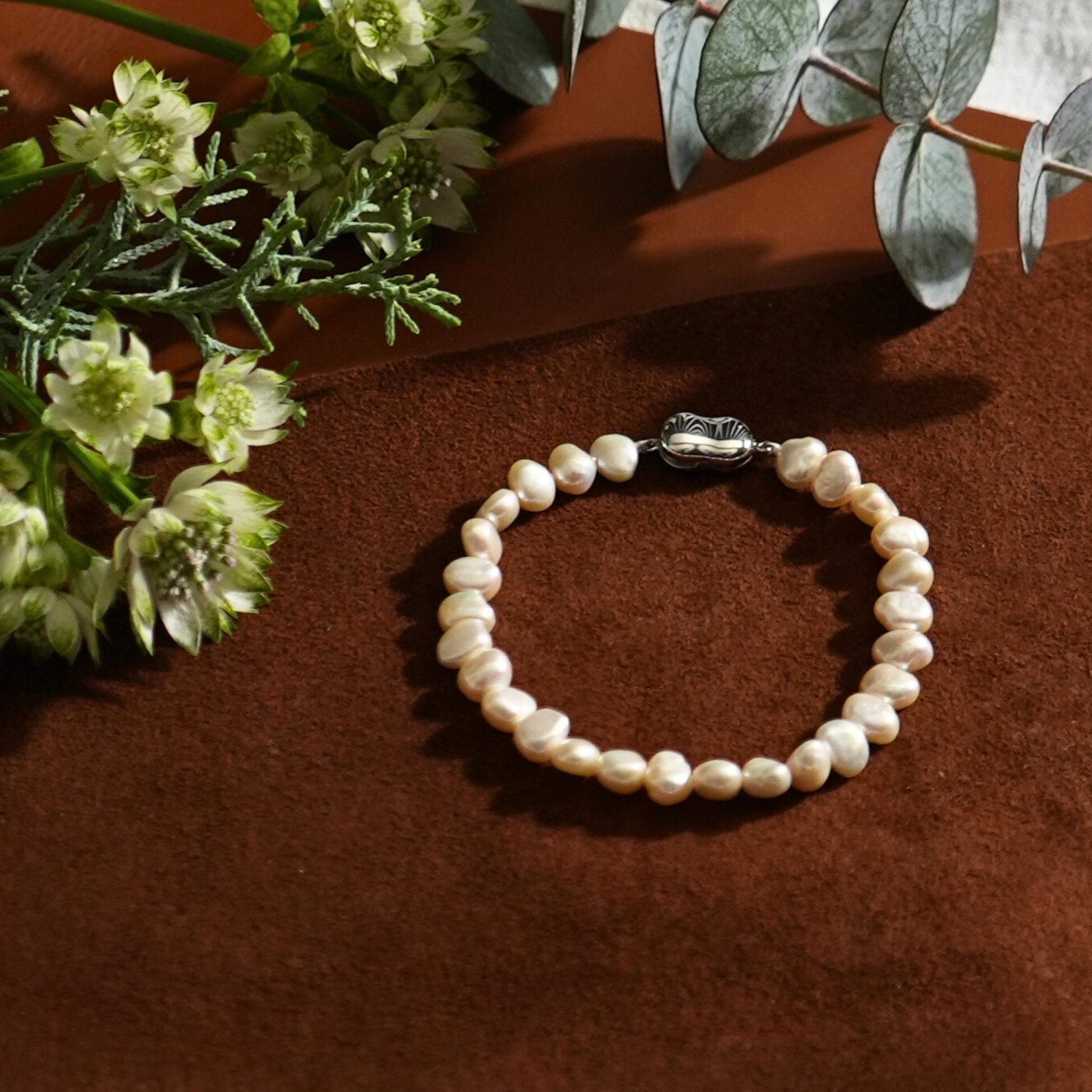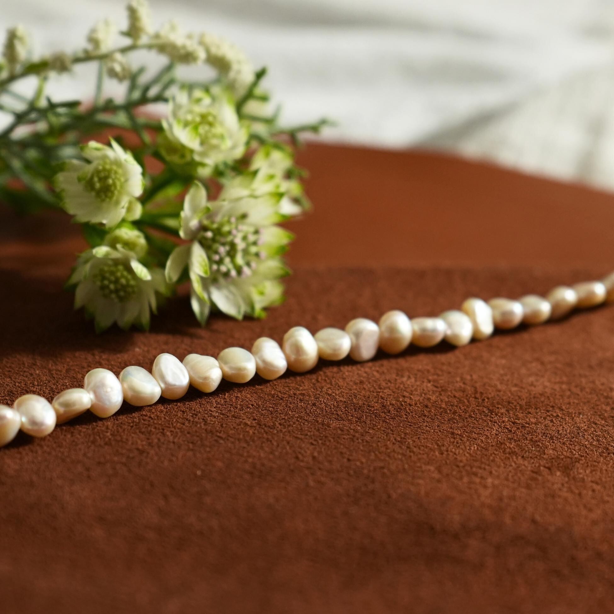 ラ・シレーナの取り扱うフレッシュ・ウォーター・パールの中でも、ナチュラルな印象を与えてくれる「フラット・パール」を使用した、ブレスレット・ジュエリー。「心地よさ "comfort" 」を追い求めて、ジュエリーに使用するパールは、ひと粒、ひと粒、長い時間を掛けて丁寧に選び抜いて、組み合わせています。