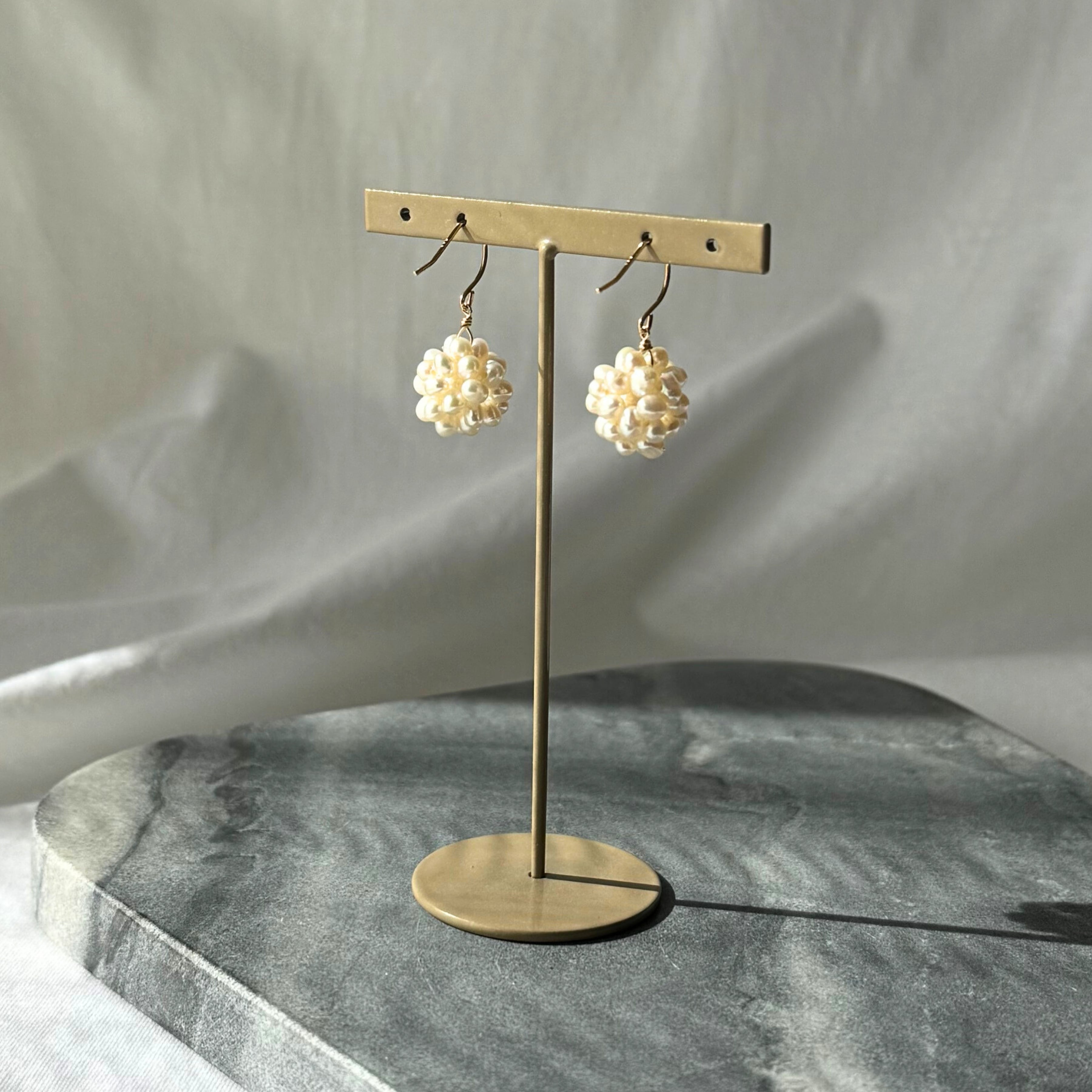 職人の手によって、小さなベビーパールを、1つ1つ丁寧に紡ぎ合わせた可愛らしいチャーム。あなたに合わせて揺れる仕草がチャーミングです。